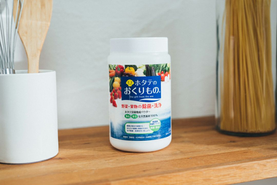 ホタテの貝殻で、残留農薬などを除去